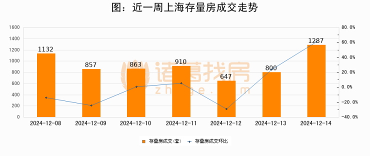 【上海成交日报】12月14日二手房1287套;涨价房源183套