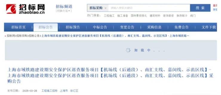今年3月,上海申铁投资有限公司发布《上海市域铁路建设期安全保护区巡查服务项目【机场线(后通段)、南汇支线、嘉闵线、示范区线】采购公告》,内容明确提到四条轨交线的计划通车时间: