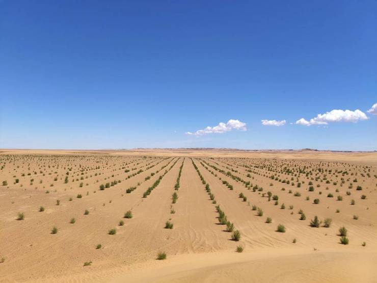 梭梭树被誉为沙漠之王,每认养一棵梭梭树相当于防风固沙10㎡,梭梭树极其耐寒耐旱,为了充分吸收水分,梭梭树的根系可以深入底下十几米,由其组成的绿地墙堡,可以锁住不断扩张的沙漠边缘,助力沙漠化的治理。