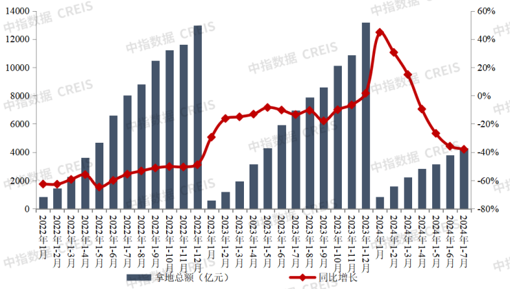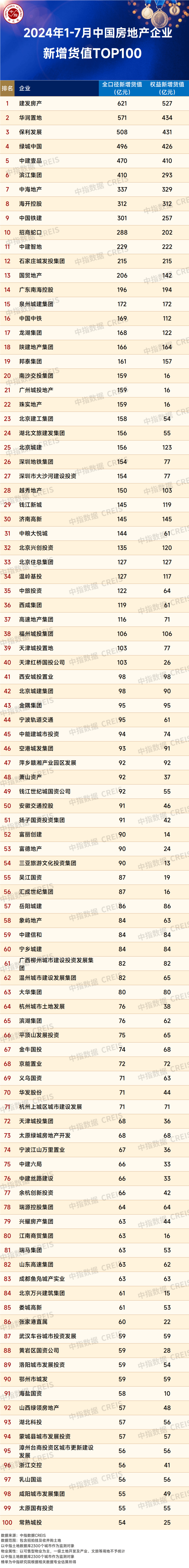 2024年1-7月全国房地产企业拿地TOP100排行榜