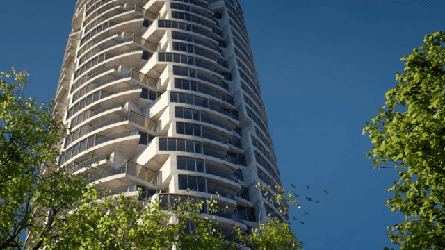 退台式设计是整座建筑的较大特色,每户公寓都有宽阔的私人观景平台,随着高度的增加建筑逐层向内缩进,保证了采光和景观视野,兼具韵律感和居住舒适感。
