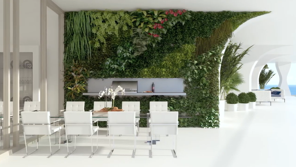 特点之一是大厅里有“在房间里的室内植物园”,除了一个人私人公园和花园外,还有两个游泳池以及更衣室和吧台。