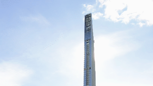 这个地基仅有18.5米宽的大楼,高度达435米。