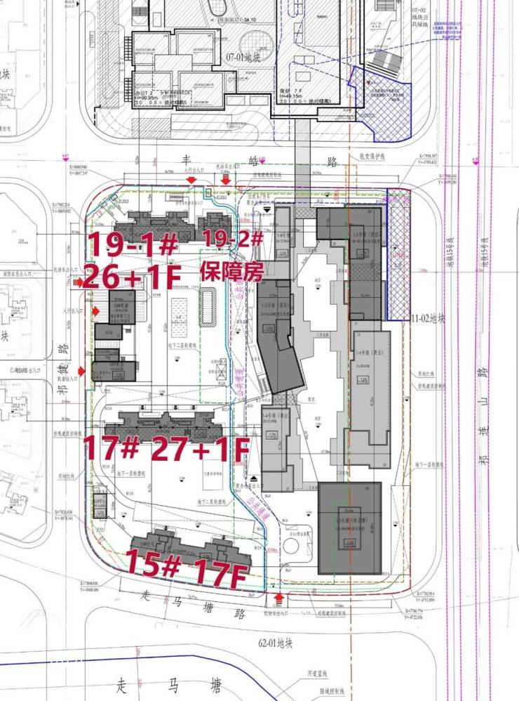 01-02地块:容积率2.4,拟建8栋17-18F高层住宅以及若干社区配套用房,该子地块内无保障房。