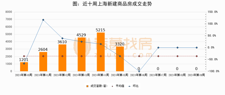 进入2024年第49周(12月02日-12月08日),上海新建商品房成交0套,较上周持平