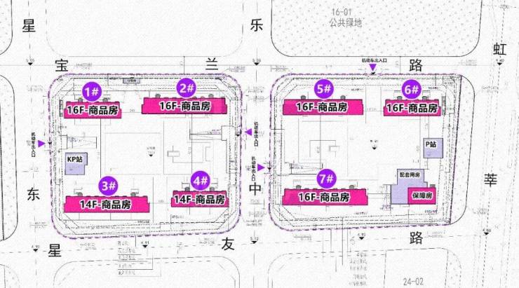 根据设计方案显示,项目容积率为2.0,拟建7栋14-16F高层住宅、1栋保障房以及配套用房,可售商品房约523套。