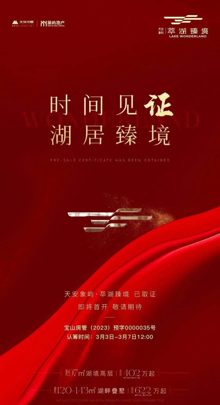 据悉,天安象屿·萃湖臻境已取证,本次推出建面约97㎡、120-143㎡高层&叠墅,高层总价约402万起,叠加别墅总价约622万起。