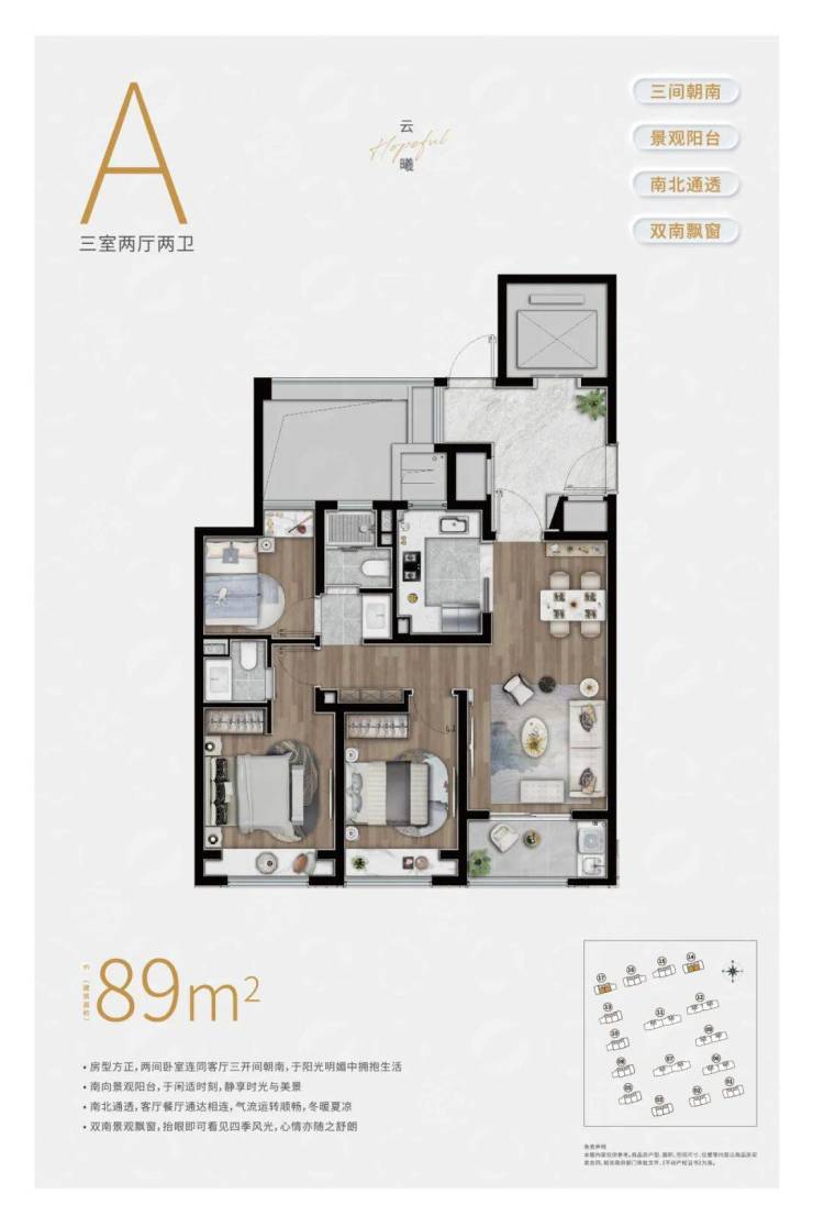 即将开盘的二批次新品房源,建筑面积约89-140㎡三房舒居。建筑面积约89㎡三房得房率约78.8%、建筑面积约98㎡三房得房率约80%。相对于普遍约73%得房率的新房而言,陆家嘴锦绣云澜同样面积的户型,多了约5.1-6.86㎡实际使用面积,让业主享受更加宽绰的居住体验。