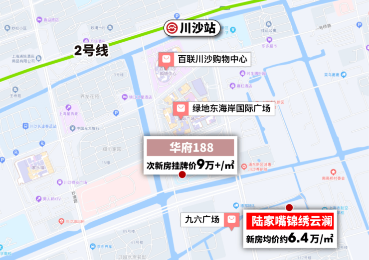 2号线是一条贯穿上海东西中轴的核心交通线,是上海能级最强的地铁线之一,也被称为黄金2号线。康桥、周浦区域的新房相较于川沙而言,距离轨交站相对较远。2号线沿线、总价约500万级起的新房,川沙成为置业优选,陆家嘴锦绣云澜距离川沙站百度地图直线距离约1公里,步行可达。上车后4站直达张江,6站直达张江高科,陆家嘴锦绣云澜以更便捷的通勤,成为浦东新盘置业理想之选。