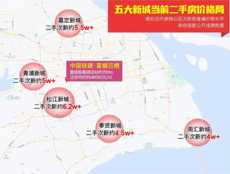 当前上海五大新城的二手房均价,如果不是距离主城区较为偏远,就是均价偏高。而在泗泾板块却能以更靠近主城区的优越位置和均价4.8w+/㎡的价格优势,上车9号线性价比真轨交红盘。