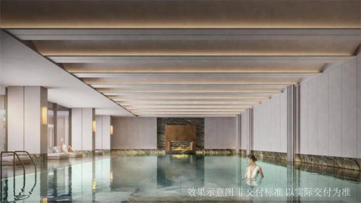 约1500m²恒温泳池会所及落差达约10米的水幕下沉式园林的打造,在奢石、臻材等元素的空间应用中,让显贵世家的社交场景,相映于粼粼碧波的柔光之中,于方寸之间游离世外。