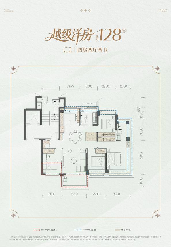 约128㎡「越级洋房」四室两厅两卫,实现了约89-95%的高实得率,将同等面积段产品的空间利用率推至新高度,做到真正的大四卧格局。