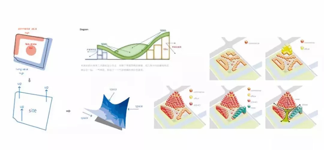 对于山体内部的无效空间,不加以勉强利用,掏空后制造出垂直高度近百米的令人震撼的大堂空间,供业主们共享。让游站未来城形成一个热闹的“市集社区”的格局。在建筑中构建一个尺度亲切的“市集”,让人与人之间的关系变得更加密切。