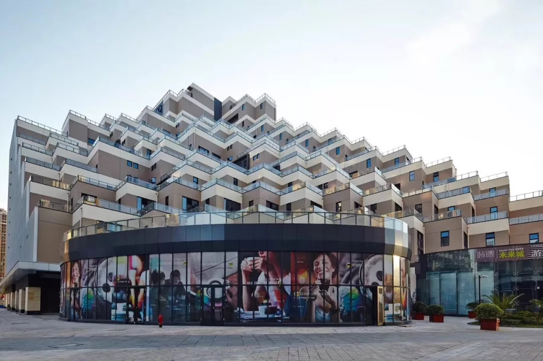 建筑群采用了全退台式设计,让大部分的房子都拥有露台,业主在自家露台上便能与邻居远远地打个招呼。作为一个市集型社区,采用了SOHO格局,人们都叫它花园洋房SOHO。