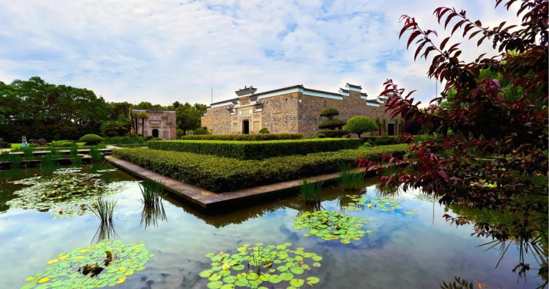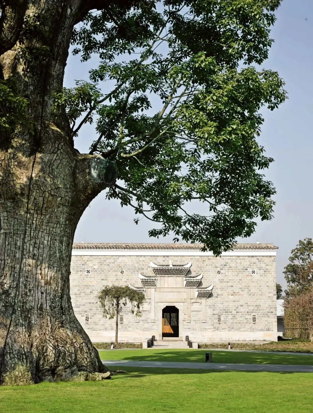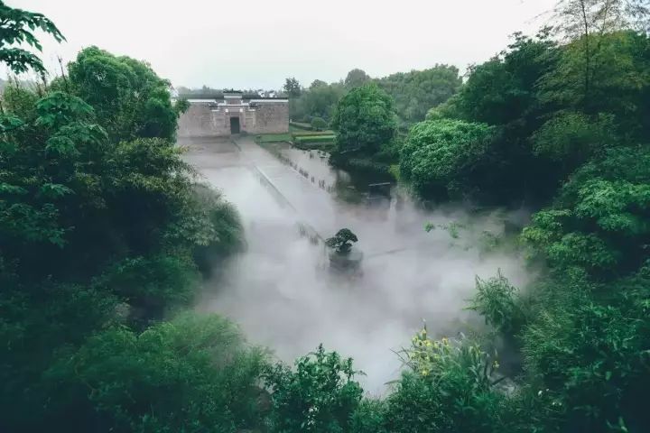 图中美轮美奂的古树成林,古建木雕石刻都来自距离上海800公里外的江西抚州。因若干年前抚州水库需要修建,为了保护这些古建筑和古林木,于是人工将这些珍贵而不可复制的瑰宝,移至魔都上海。