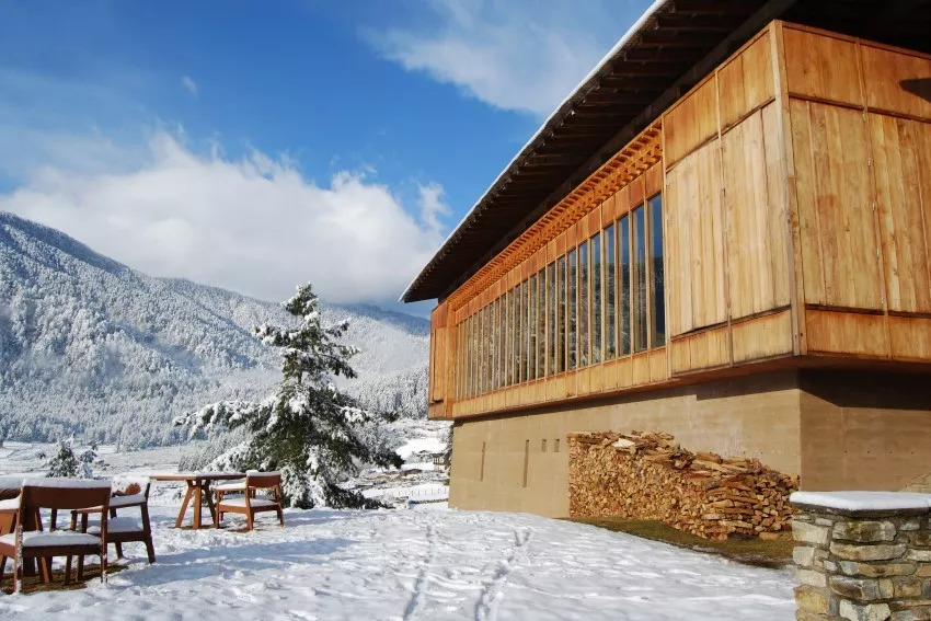 就在设计师抵达不丹之前,发生了一场大地震,于是,「我们不能以传统的方式建造酒店。但当然,我们可以做一块抗震的坚固房子」,成为了设计之初的共识。