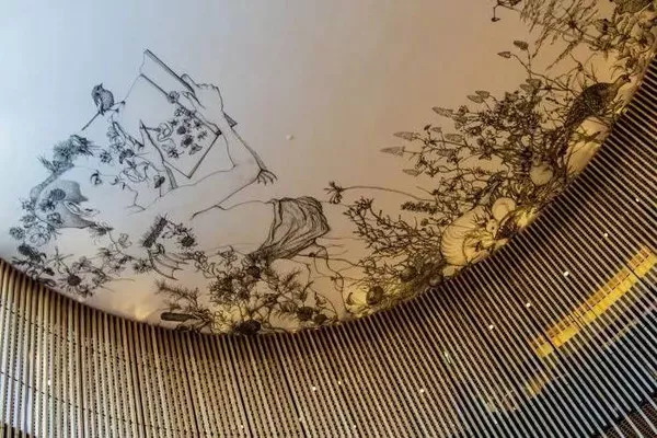 最引人注目的就是它巨大的天花板,西澳知名艺术家 Andrew Nicholls 创作的《喜悦和保护》(Delight and Hurt Not),五层高的图书馆,其中三层都可以瞻仰这幅巨大的作品。 珀斯市长 Lisa Scaffidi 形象地称其为城市的「客厅」。