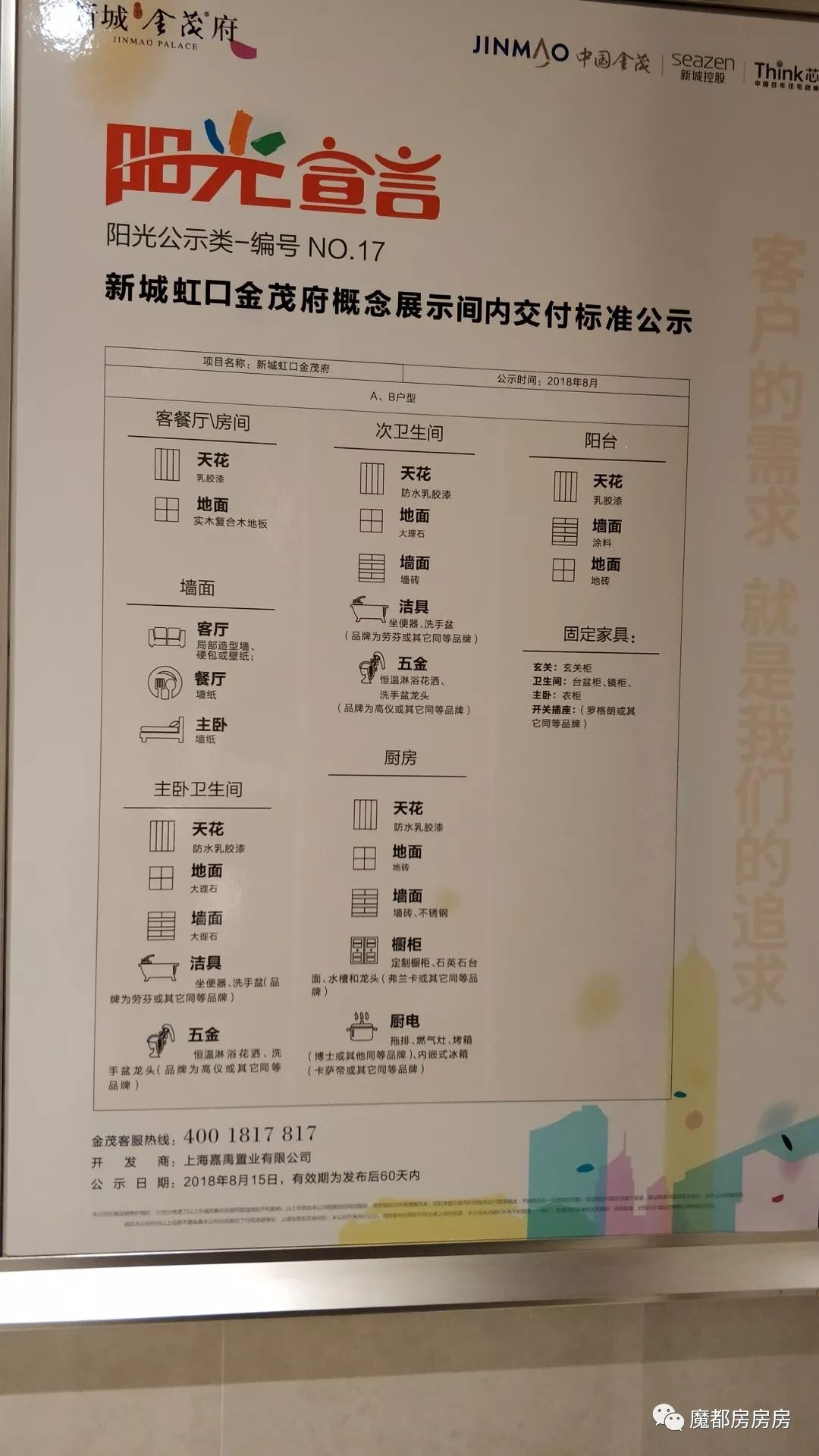 以下是新城虹口金茂府合同约定交付的标准公示。白纸黑字的清单显得诚意满满