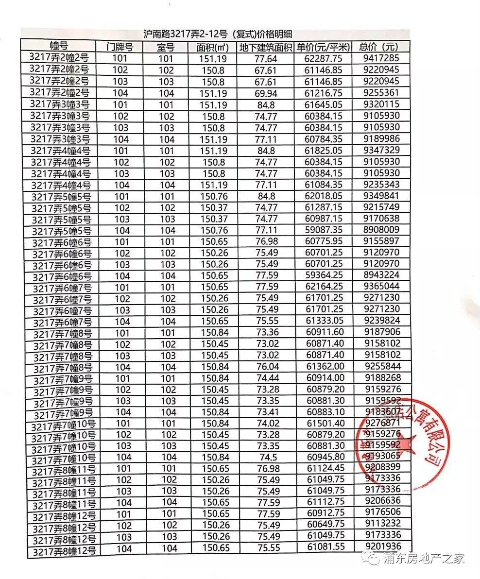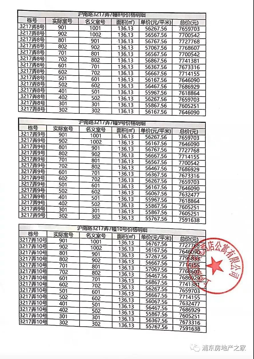 一房一价表