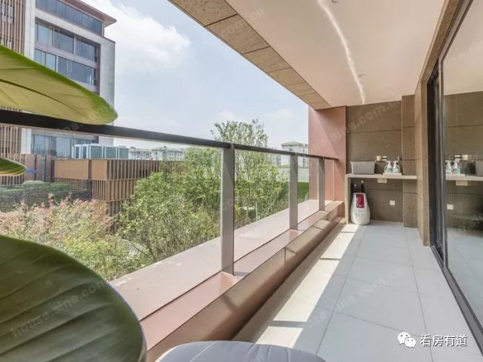 6米宽的阳台是该136㎡户型的一大亮点,一般这一类阳台都会设计成4门推拉,而东原印·柒雅仅设计为两门。