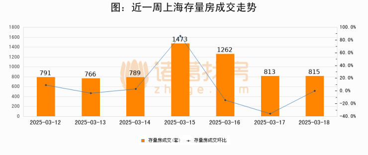 从存量房来看,2025年03月18日上海存量房单日成交815套,比昨日增加2套,环比上涨0.2%。从近一周存量房成交来看,上海存量房日均成交套数为958套,03月18日单日成交815套,低于近一周平均水平14.9%。