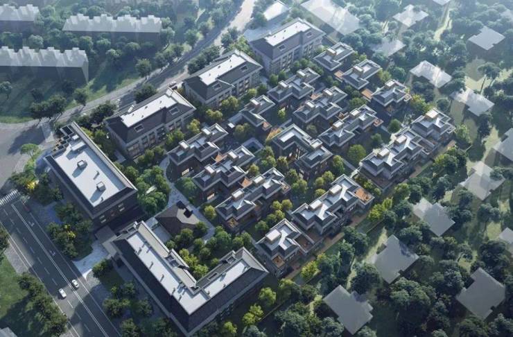 项目地块为一个三角形,由12栋中西合璧的四合院组成,其中12号是楼王,13号是物业管理用房。11栋可售房源的面积段约为1000-1500㎡,其中4栋为精装修交付,7栋为毛坯交付。