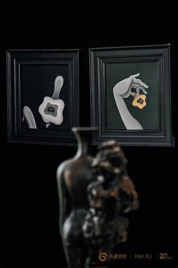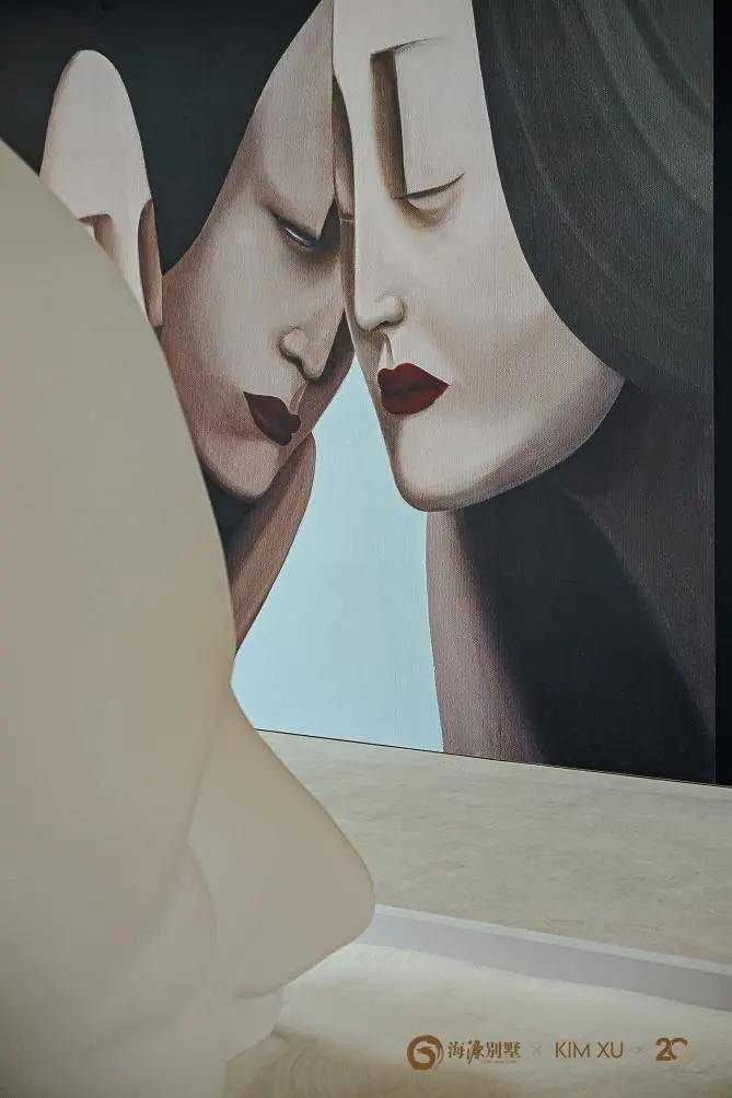 本次画展中,KIM XU多幅作品,将自然肌理与建筑空间深度融合。雕塑与油画错落分布于海源别墅的室内,通过光影流动与材质碰撞,诠释“时光源头”的永恒之美。艺术家更以定制化手法,将海源别墅打造成“一座可居住的艺术馆”。