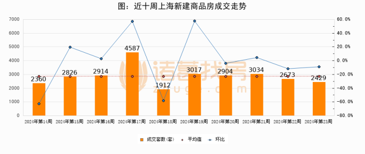 【上海成交周报】第23周新房成交2429套,涨价房源1707套