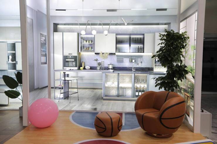 值得一提的是,基于新生代消费者的社交需求,圣象构筑了一份六大场景趋势下的“未来家”蓝图。例如,在圣象的构想中,开放式厨房是个朋友欢聚最合适不过的场所。基于此,圣象给出了以地面铺装为基础而延伸的开放式厨房解决方案,地面可从客厅将地板自然过渡到厨房空间;高端品牌Homelegend产品从色彩、材质上赋予居家社交更多装饰;另外,圣象也推出了运动地板,更呵护、更具弹性让更多用户在室内也能积极开展居家运动。