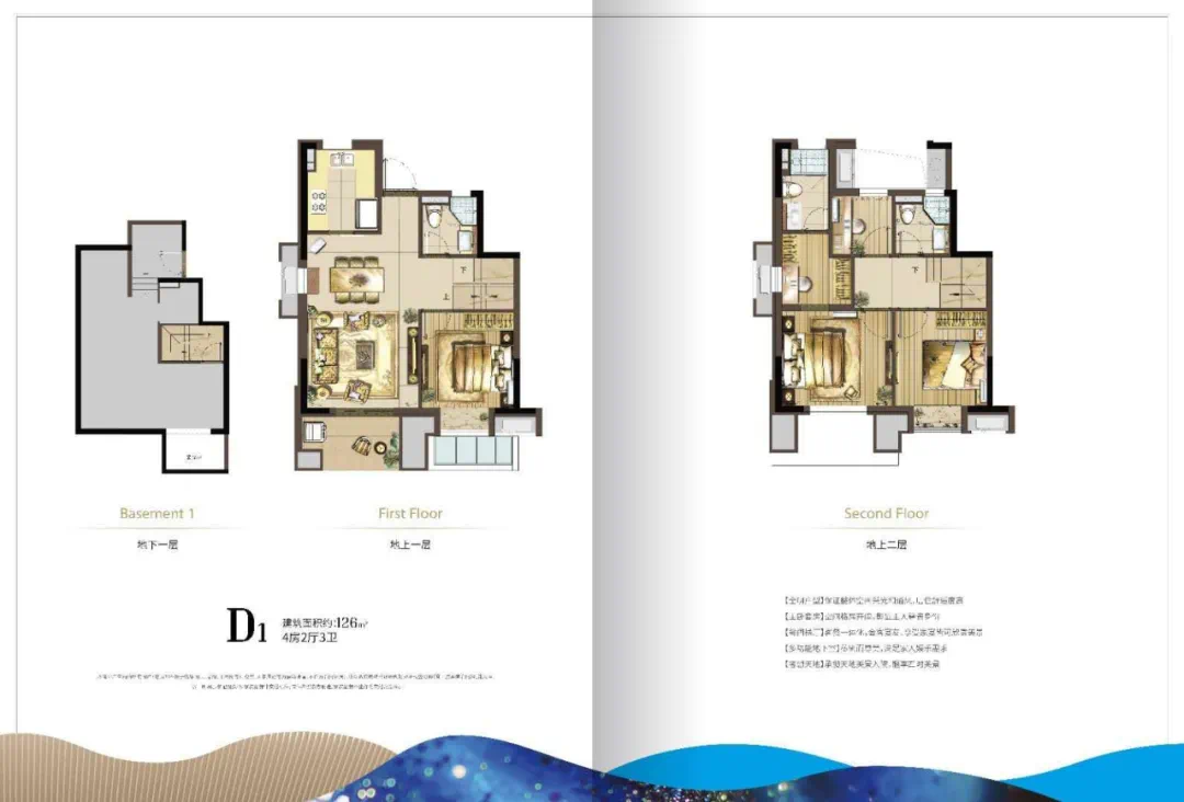 建面约126㎡下叠户型图另附赠送44-56平地下室面积