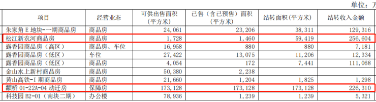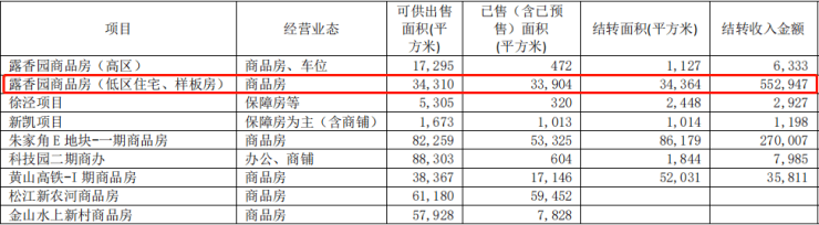 表现最好的项目变成了松江新农河商品房和闵行颛桥 01-22A-04 动迁房,结转收入均只有二十几亿,露香园整体结转收入不足15亿。
