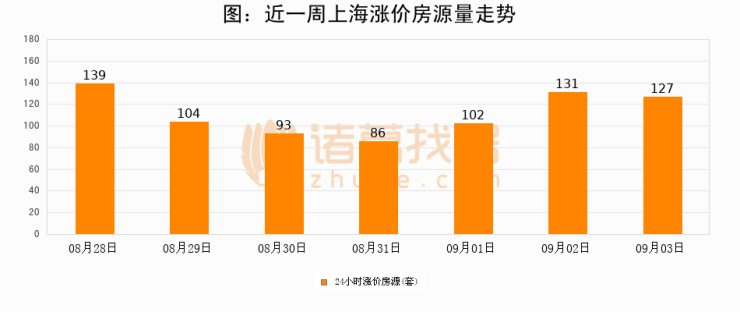 根据诸葛找房数据显示,上海24小时涨价房源量为127套,较09月02日减少4套,环比下降3.1%。与此同时,涨价房源占比小幅回落,对于购房者来说是一个入市窗口期,购房者可抓住时机入市。