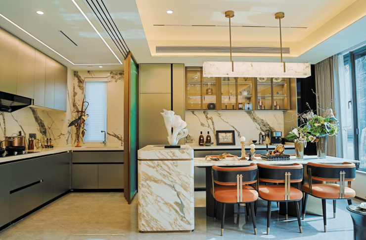以海洋的隽永格调,搭配优雅的家装、高定的奢石、国内一线大牌的家居品牌配置,营造永不过时的装修风格,致献一个高品质墅居。
