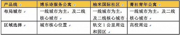 旭辉领寓旗下三条产品线:博乐诗、柚米国际、菁社青年,在选址上就有明显的差别。博乐诗的主要客群对象为外企高管和商务金领,选址会落在城市核心位置,柚米国际主要面向企业白领,选址会充分考虑共同交通的便利性,主要落户在轨道交通一公里周边和园区,而菁社青年公寓则主要围绕高校周边布局。