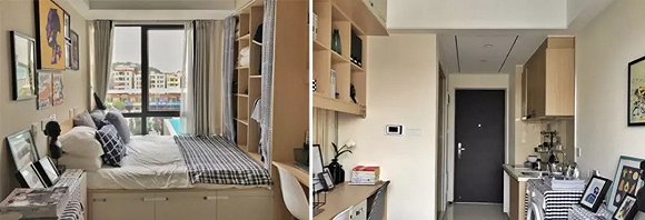可以看出,很多小户型所谓的一室一厅,仅仅是多了一张简易沙发而已,称不上真正意义上的客厅。而阳台对于一居室来说,就更奢侈了,绝大部分的中低端青年公寓都不配备阳台。