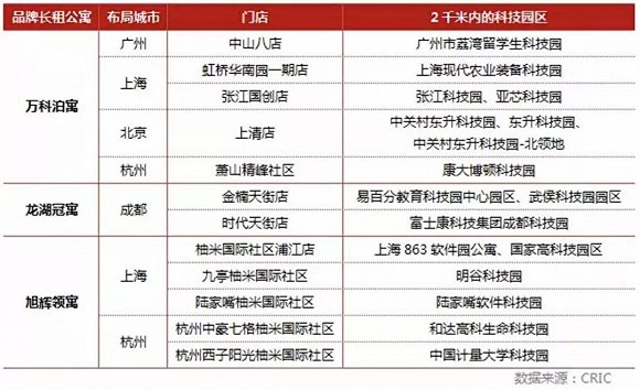 除了交通便利外,青年公寓选址还偏爱科技园区周边区域。因为科技园区白领集中,是青年公寓的目标客群聚集地。像泊寓、冠寓、领寓的项目,一般都会选择布局在方圆2千米有大型科技园的位置。