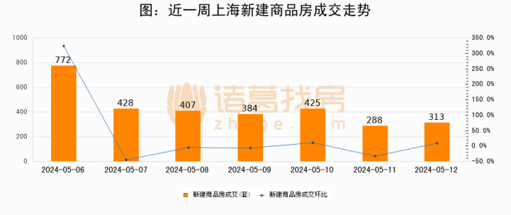 【上海成交日报】05月12日新房成交313套;涨价房源162套