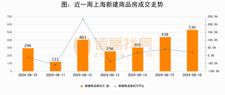 【上海成交日报】08月16日新房成交530套;涨价房源146套
