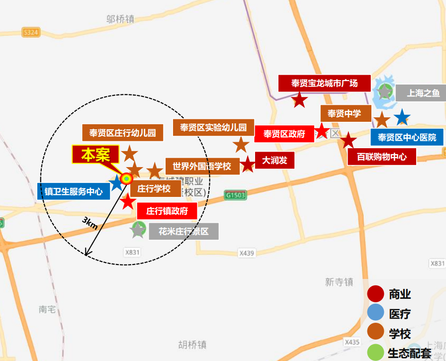 大名城项目所处的庄行板块,3KM范围内覆盖基本的医疗和商业资源等,向东更是受整个奉贤新城配套辐射,区域内拥有南桥百联、奉贤宝龙广场、大润发等众多丰富商业。