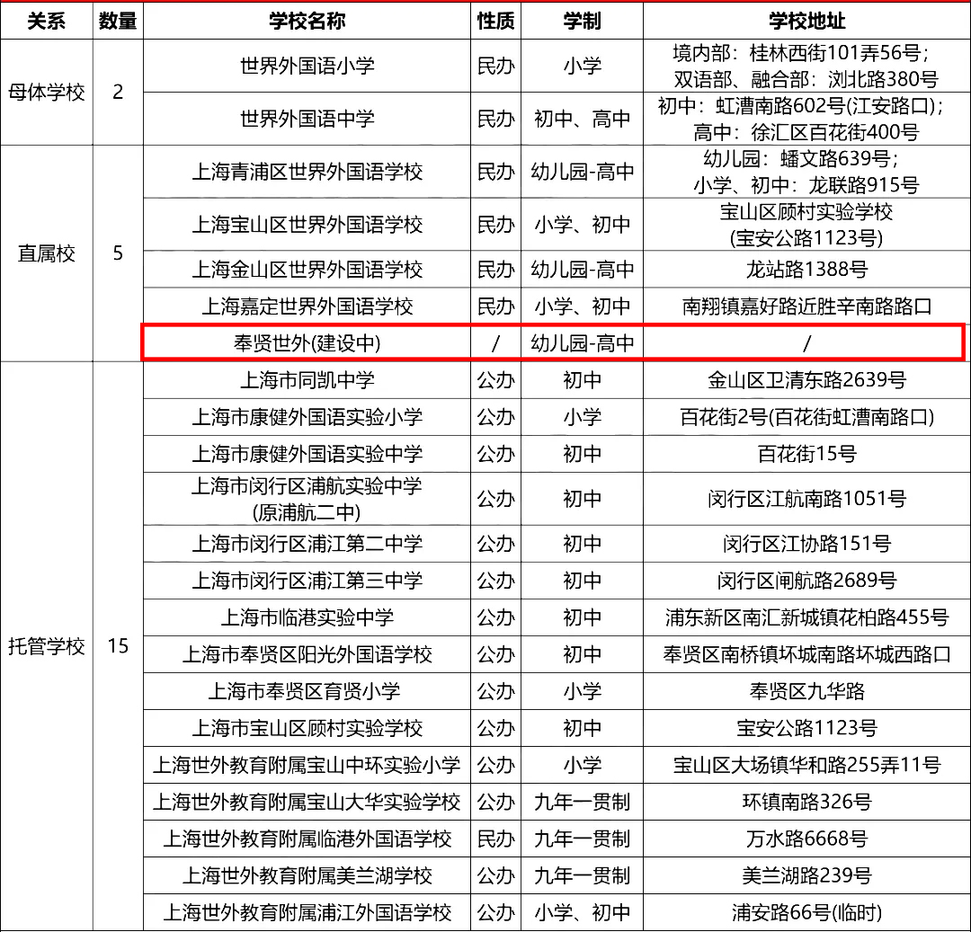 它与青浦世外、宝山世外、嘉定世外、金山世外等同属于上海世外集团旗下,是上海热门的民办名校之一,口碑极好。奉贤世外并非托管,而是第五所世外直属分校,也是南上海少有一所世外直属分校。