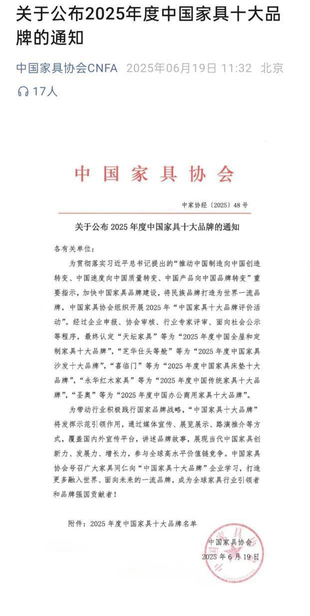 2025年度“中国家具十大品牌”发布,左右沙发连续三年霸榜