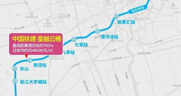 星樾云栖直线距离约700米9号线泗泾站。3站七宝,6站漕河泾开发区,9站29分钟直达徐家汇!