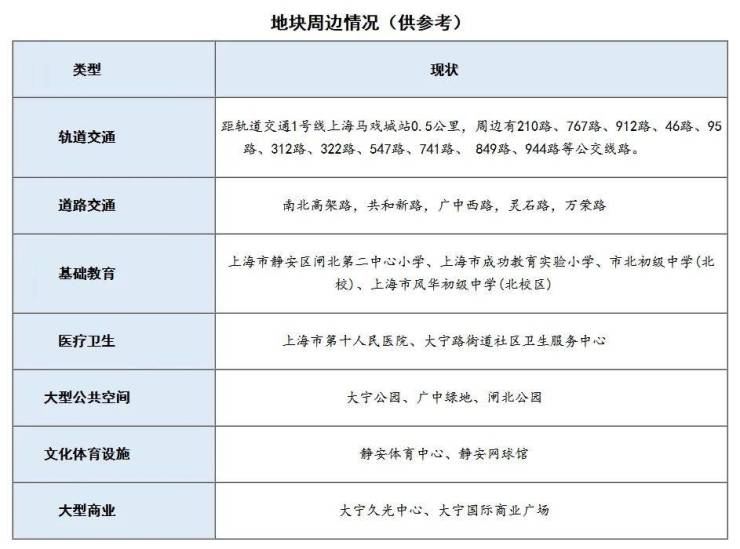 静安区灵石社区N070402单元094a-14地块出让面积3.16公顷,容积率2.95,为住宅+办公混合用地。地块距1号线上海马戏城站500米,近大宁久光中心、大宁国际商业广场。