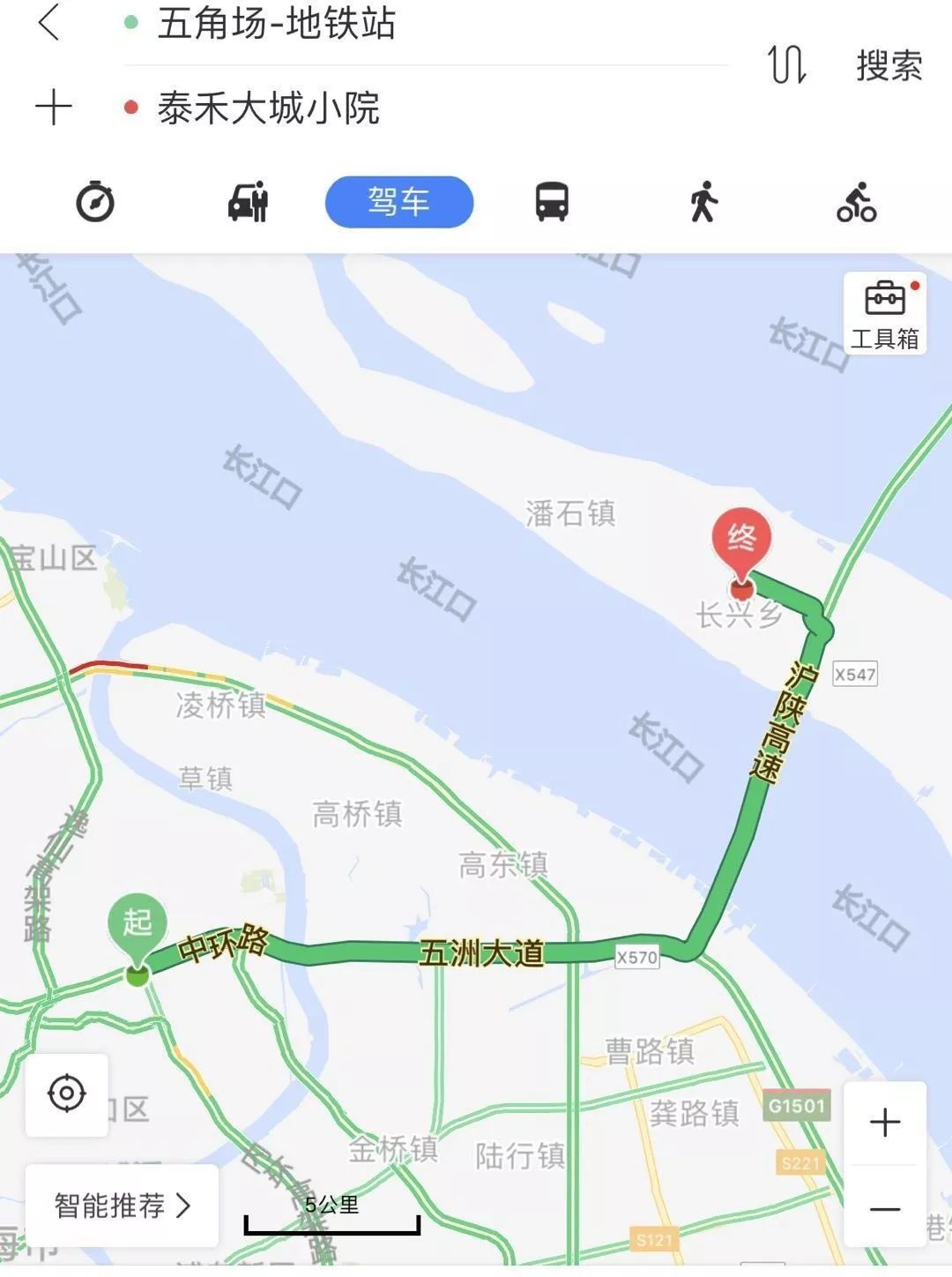 驾车从杨浦五角场出发到泰禾大城小院项目,百度预估约38分钟。(还是在有点小堵车的情况下)