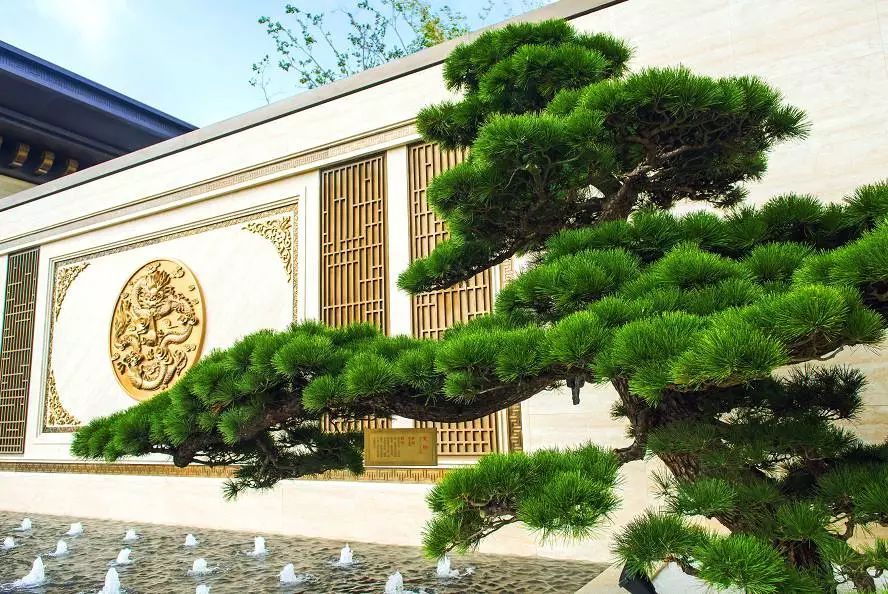 泰禾大城小院目前的示范区和售楼处震撼!门头大量运用黄铜和汉白玉元素,大门两侧的石狮为整块汉白玉纯手工雕刻而成。石狮后方的柱头和柱角,也是手工打磨的汉白玉浮雕作品。门口的迎客松是不惜成本、直接空运移植的日本黑松。后方黄铜照壁,是纯黄铜打造的双龙戏珠……但这还只是临时空间,最终小区会所将比现在还要华美百倍!