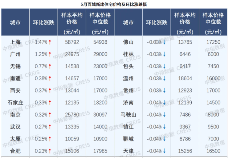 上海涨1.47%,广州涨1.25%!一线城市5月新房价格领涨百城,二手房延续“以价换量”