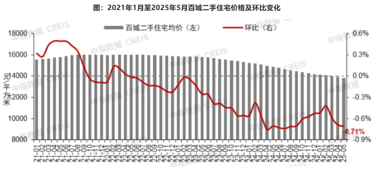 据中指研究院数据,5月百城二手住宅均价同比跌幅扩大至7.24%,环比跌幅较4月份增加了0.23个百分点,市场主流策略转变为“以价换量”。