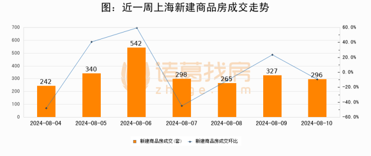 【上海成交日报】08月10日新房成交296套;涨价房源131套