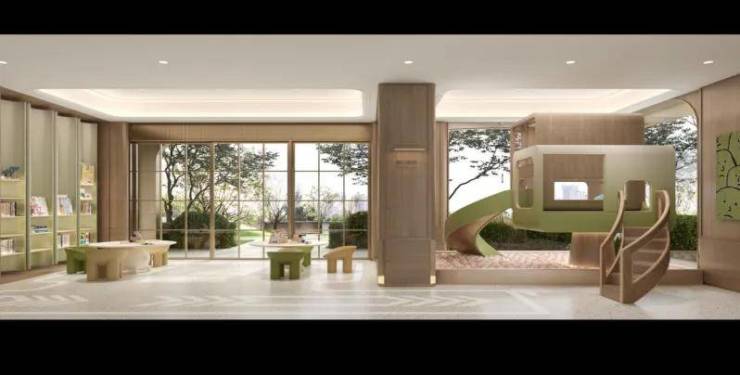 3#楼下架空层涵盖室内玩乐区、植物课堂、四点半学堂等功能空间,解决双职工家庭带娃痛点;4#楼下有氧健身、瑜伽室、品茶区、日落咖啡吧等功能空间,形成活力社交场,下楼即享全龄段生活场景。