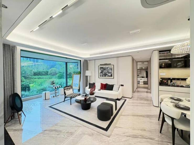 中环铂樾通过华为智家系统实现了全屋设备的互联互通,业主可通过语音或手机APP远程控制灯光、空调、地暖,甚至实时监测设备运行状态。而玄关感应灯、智能窗帘等细节设计,更让科技服务生活于无形之中,为日常起居增添便利与温度。